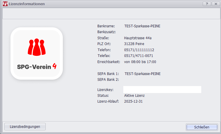 Anzeige der Lizenzinformationen in SPG-Verein 4, basierend auf den gespeicherten Basisdaten.