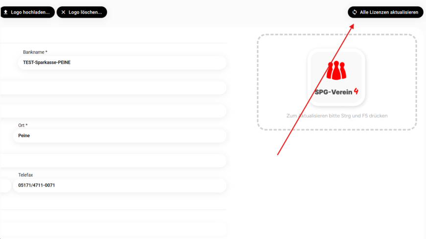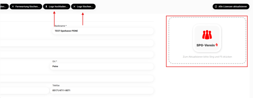 Nach dem Ändern des Logos oder der Basisdaten kann es notwendig sein, die Seite mit Strg + F5 zu aktualisieren.
