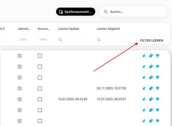 Filter leeren“.