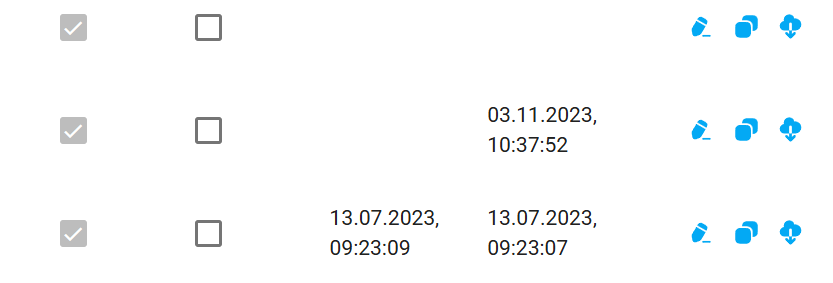 Diese Buttons sind jeweils nur dann sichtbar, wenn NUR aktive ODER archivierte angezeigt werden.